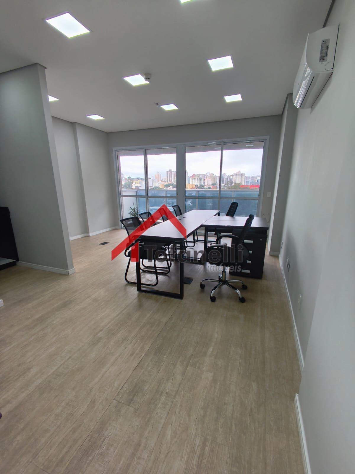 Piso vinilico, mesas, cadeiras, 2 poltronas, iluminação em led, banheiro privativo com armario e espelho, copa, ar condicionado, sacada, 1 vaga de garagem.